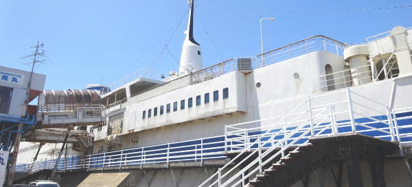 駅からホテルに向かって歩いていく。途中の旧函館桟橋駅に係留されている、旧青函連絡船『摩周丸』を見学する(昭和39年〜昭和63年就航後博物館として展示) |