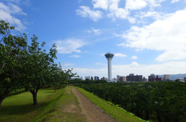 五稜郭裏門から2稜を歩いて表門へ、眺めのいい散歩道。 |