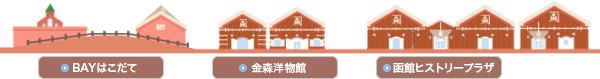 ![]() 赤レンガ倉庫の向こうに函館山 |