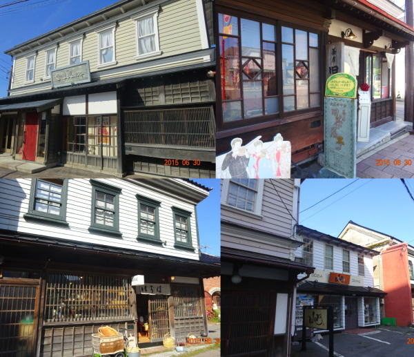 | 八幡坂、大三坂、基坂、二十間坂が四大坂だそうで、最後に其の一つ二十間坂を下り市街地に下りて来る。 エキゾチックなお店があちこちに、波止場の赤レンガ倉庫群へ。 |