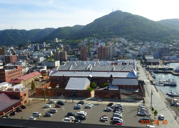部屋は10階。すぐ前が赤レンガ倉庫群で正面に函館山。 |