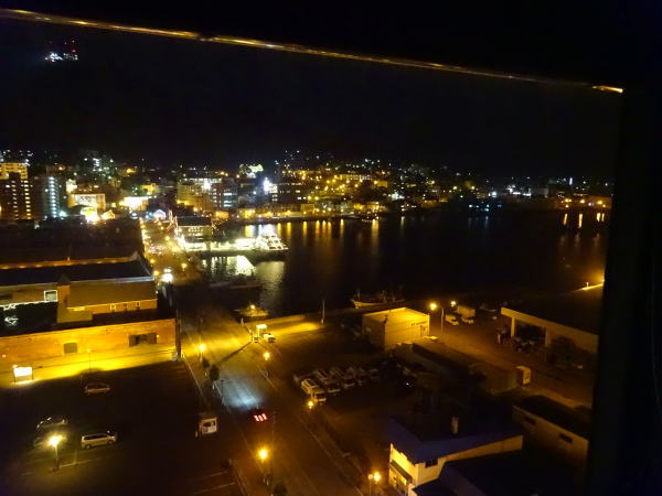 部屋の窓からの夜景もとても綺麗。先ほどまでいた函館山の展望台の明かりも遠くに見える。 |