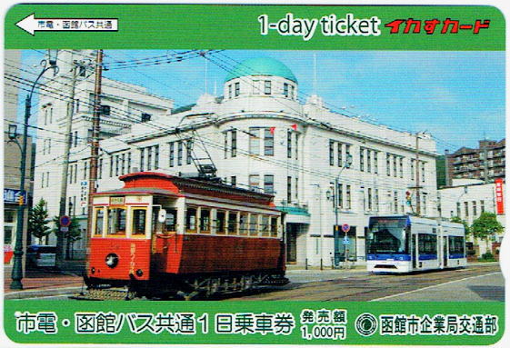 函館駅で、市内電車バス一日フリー乗車券を購入。 |