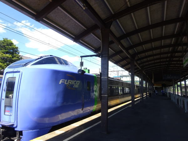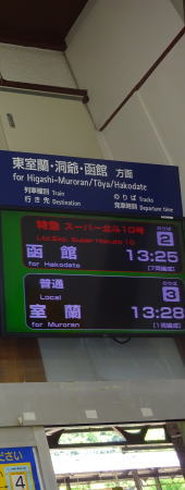 登別駅から13:25スーパー北斗10号で15:46函館着すぐ向かいのホームに停車中の 15:56発のスーパー白鳥34号に乗換え〜18:01新青森到着。 |