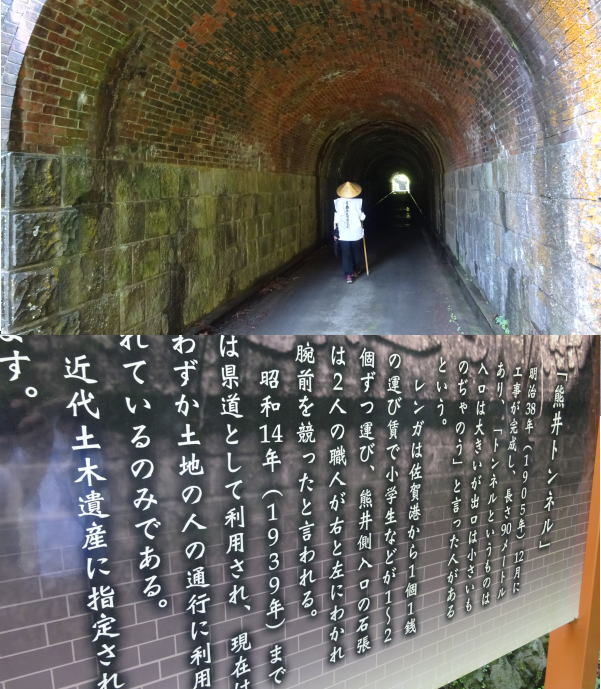 黒潮鉄道を右にところどころ見ながら熊井集落から斜面を登っていくと明治38年完成の熊井トンネル伊豆の天城隧道によく似ている。