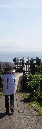 強風の足摺岬を見て、金剛福寺へ。37番寺を出て3日かけてやっと到着した。 |