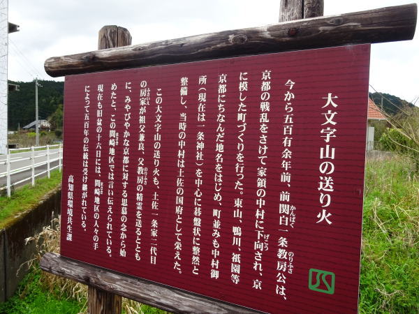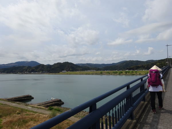 四万十川を渡り国道を逸れて遍路道を一時間で大文字の送り火の四万十市間崎を通過。 |