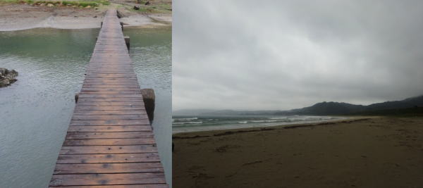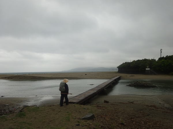 大岐の浜の遍路道は木橋を渡って海岸へ出る。 |