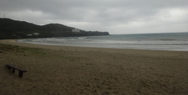 入野海岸にやっと着くが7〜8時間歩いてきて限界手前。