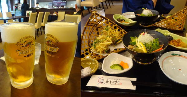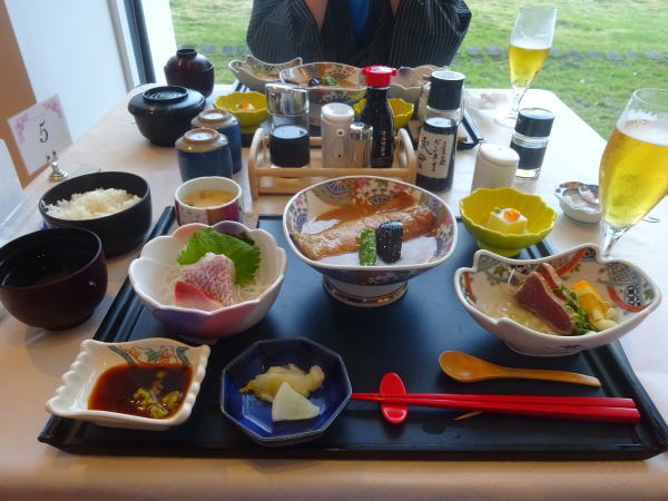 お遍路プランで二人で2食付き\15400ととても安いが料理もサービスの満点!明日の姉妹施設ネストウェストガーデン土佐と一緒に予約したので今日明日はワンドリンクサービスで500MLの生ビールをいただく。