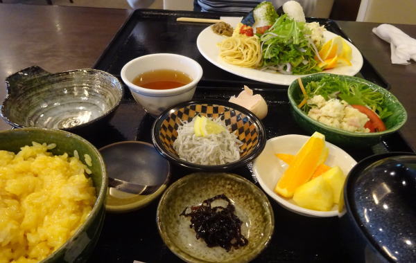 民宿白浜で手打ちうどん&焼うどんの昼食。