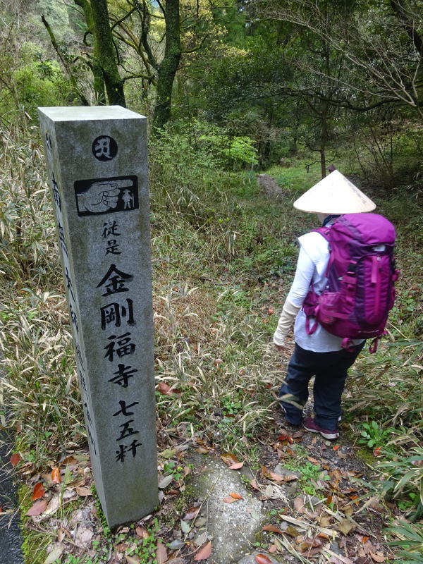 新伊豆田トンネルを抜けた先に四国遍路の中興者『真念庵』がり寄って行く。地図だと遍路道から僅かだが、急な山道を結構歩いて着く。 |