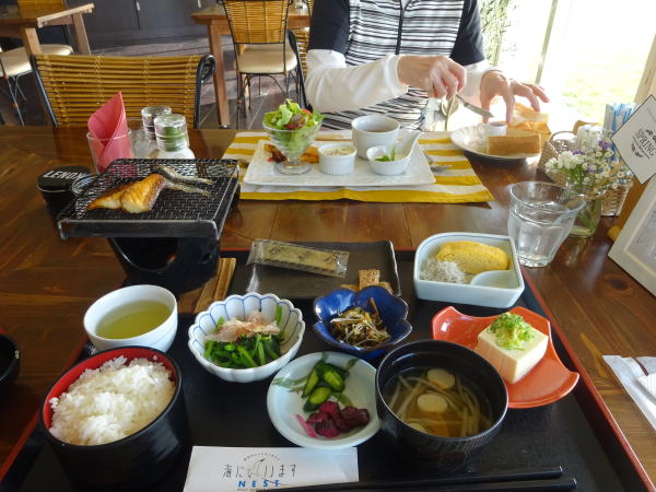 | 7:00起床ラジオ体操して1Fレストランで朝食。強風だが天気は快晴。 |