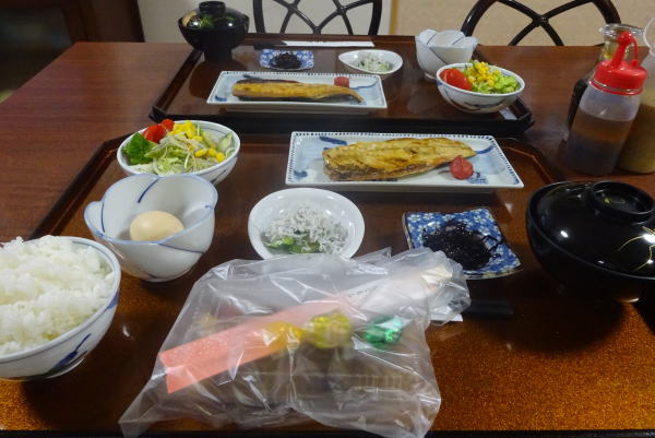 お遍路の朝は早い。ユーチューブでラジオ体操をして7時朝食。