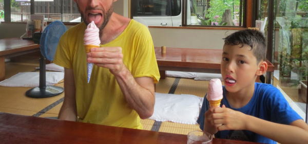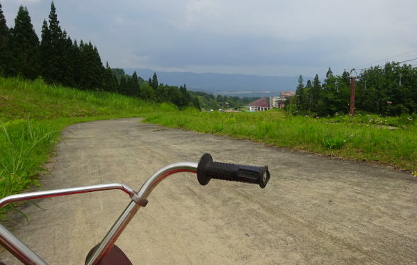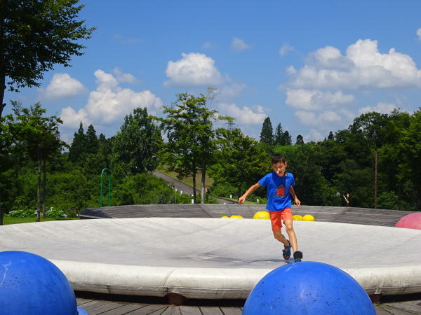グリーンピアは敷地がとても広いので散歩やサイクリングにはとてもいい。タダオも滞在中補助輪なしで自転車に乗れてだいぶ上達したみたいだ。 |