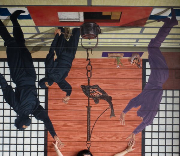 CoCoLo湯沢・がんぎとおり 入り口付近に倒れた人!一瞬びっくりしたが酔っ払いの人形。