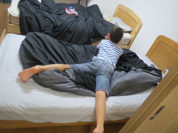 ボーリングはガター無しにしてもらうが、最高得点はMの115点。部屋に帰って最後のお風呂。 |