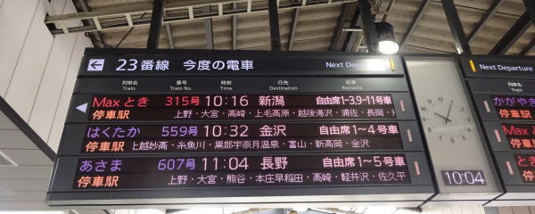 タダオ中心の3日間終え、 12:08とき318号で東京へ。 |