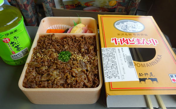 | 「駅弁屋祭」で牛肉どまん中&かきめしなどを買って10:16発新幹線とき で越後湯沢へ。 |