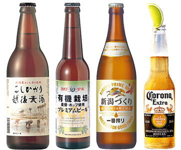 新潟県産の「こしひかり」を使用したスッキリ切れのある辛口ビール。