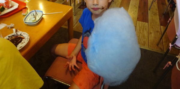 朝ごはんは大きな綿あめ作って大よろこび。 |
