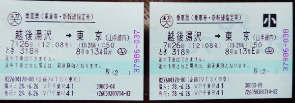 7月26日 10:00送迎バスに乗り越後湯沢駅 10:50着 |