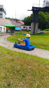 ゴーカートは140㎝の身長制限があり、僅かに足りずお父さんと相乗り。 |