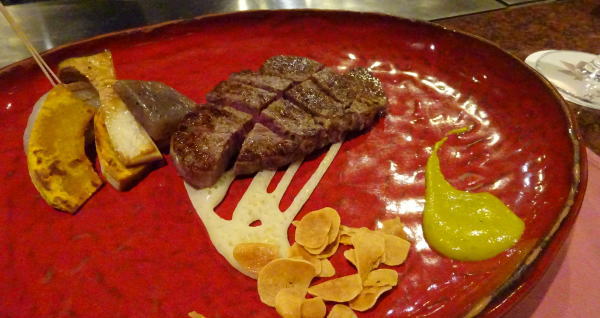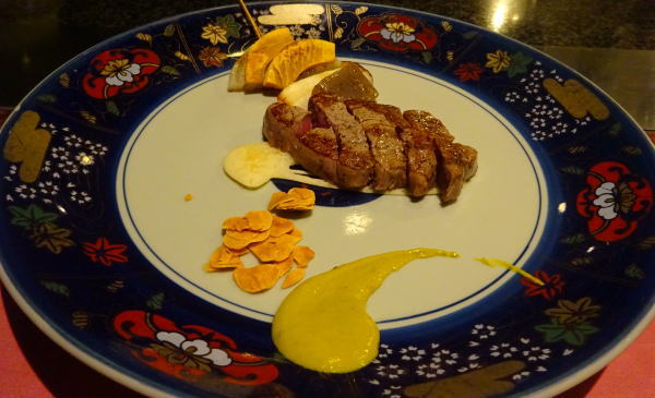 富士屋ホテルの夕食は13階のレストランで鉄板焼き。 |