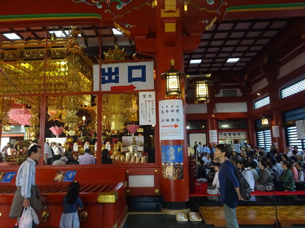 | 参詣者は本堂でお参りすると、順路に沿って本堂裏から駅方面に誘導される。 |
