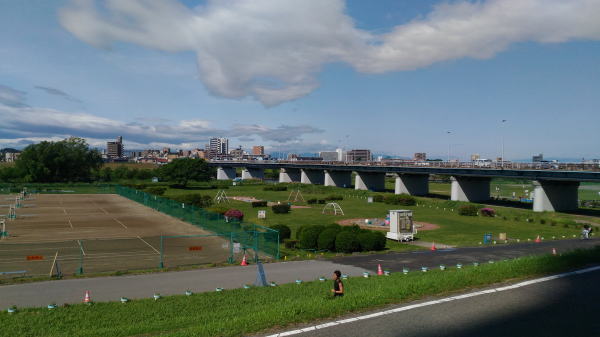| 法政二高を後にして南武線・向河原駅横を通って多摩川堤に出る。 |