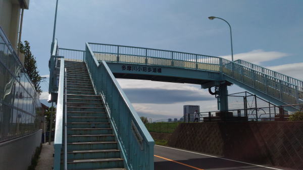 | 多摩川堤のこの歩道橋を左折すると下町工場の裏通り... |