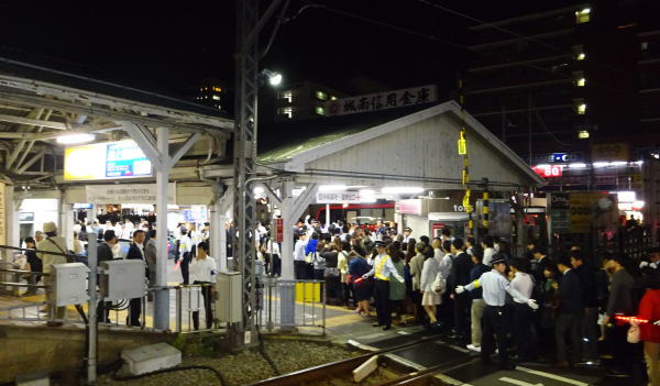 名曲『池上線』の池上駅もお会式で歌のイメージとは程遠い賑やかさ。 |