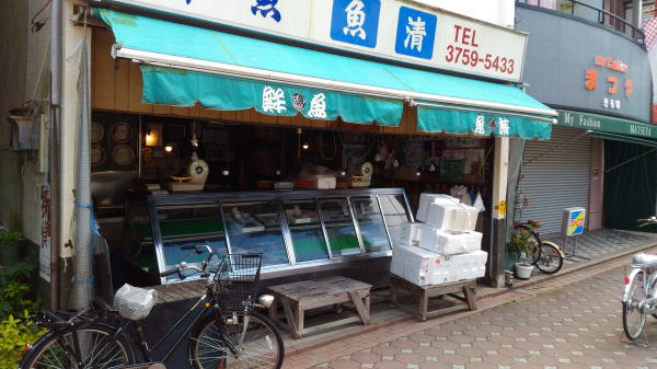 | いろいろドラマのロケ地になった通りで映画「のだめカンタービレ」上野樹里が魚を買った下丸子.魚清 |