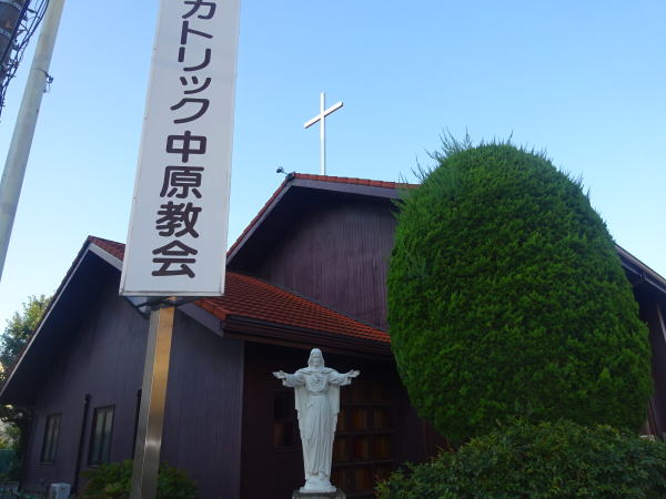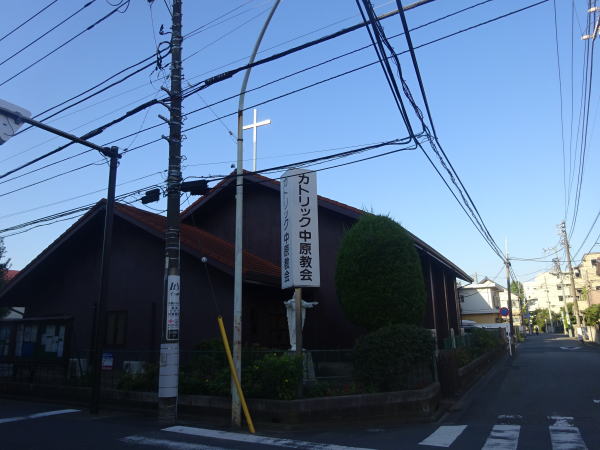 | 当時からあるらしい「カトリック中原教会」を過ぎるとそこに懐かしい法制二高の門 |