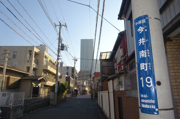 | 二高を背にして見る小杉駅方面の高層マンション |