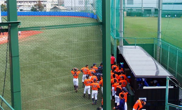 | 昔も大学と高校の野球グランドは隣同士だった。オープン戦用大学野球部のユニフォーム |