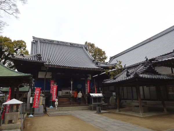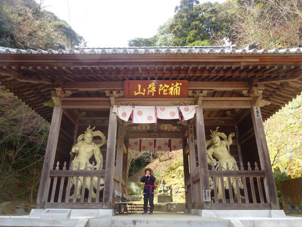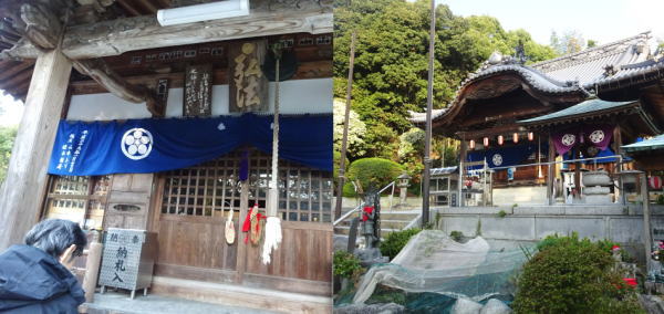 菊間・やくよけ大師遍照院に立ち寄り参拝する。山門には名産の鬼瓦 |
