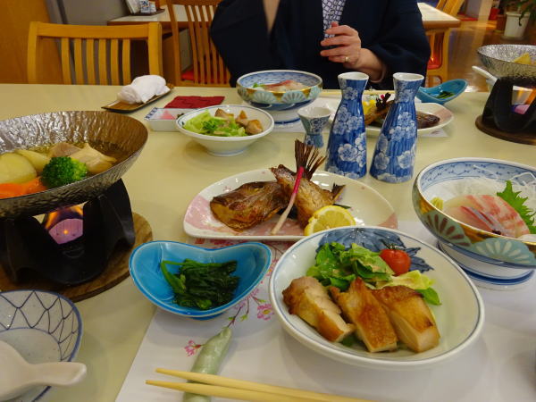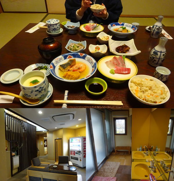 18:00食堂で7~8人のお遍路さんと一緒に夕食。へんろ宿ならではで、いろいろ最新情報が聞けるのでありがたい。 |