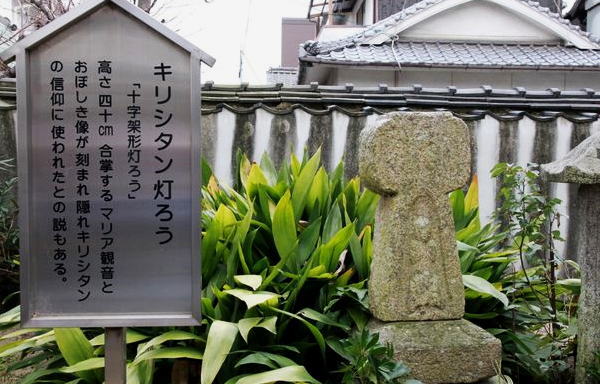 大師堂左の塀ぎわにキリシタン灯ろう |