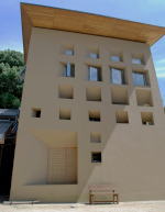 | 途中に城のような大きいな建物。今治城かと思って通りすがりの高校生に尋ねると「今治城山ハイツ」というマンションだった。 |