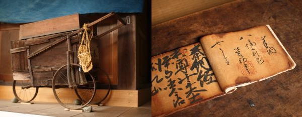 本堂前にかざられた昔の箱車。昭和8年、足の不自由な15歳の少年が、犬に引かせて巡礼した箱車で、