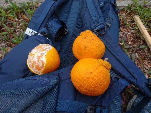 登り始めしばらく進むと畑仕事のおじさんに呼び止められ、お接待にボンタンやレモンをいただく。 |
