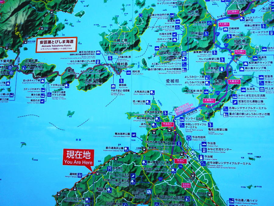 松山から今治までは美しい瀬戸内海沿いの遍路道をひたすら進む。 |