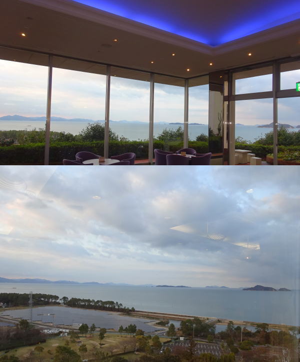 | 湯ノ浦ハイツは高台に建ちどこからも瀬戸内海の絶景が眺められる。皇太子様も宿泊されている。 |