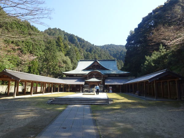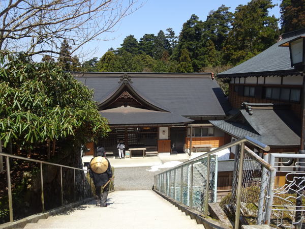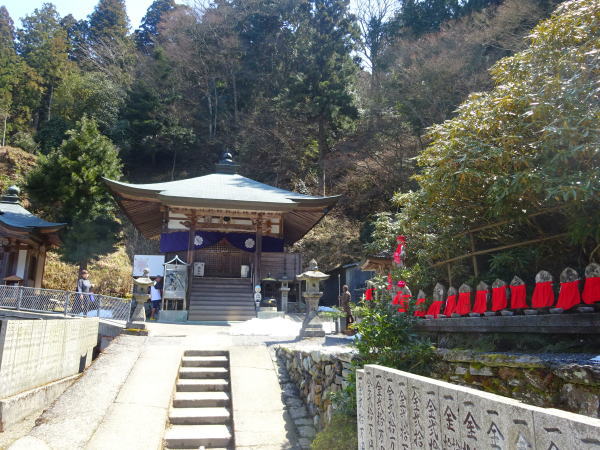 四国霊場のうちで3番目の高地にあり、林道が開通するまでは「遍路ころがし」の最難所だった。桜咲く境内にはところどことまだ雪が残っている。 |