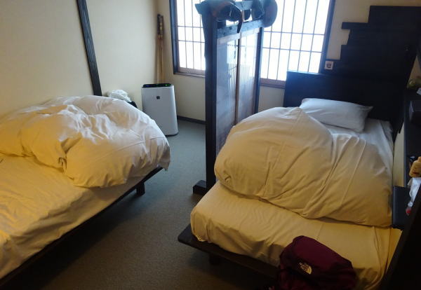 | この温泉はゲストハウスなので布団の上げ下ろしはセルフサービスとなっている。 |