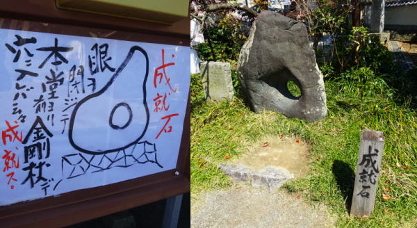 | 目をつむって金剛杖を通す成就石とお迎え大師 |