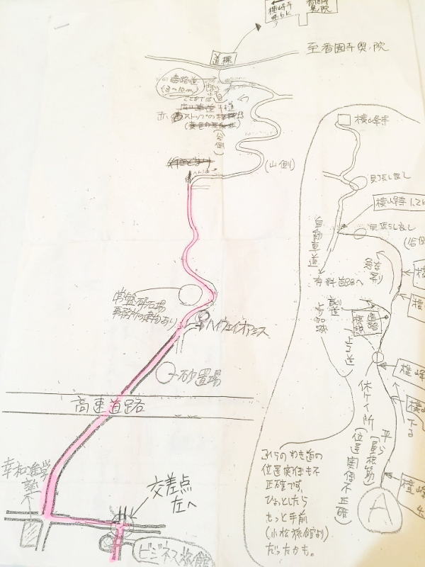 | お風呂で一緒になった調布から来ている一人遍路さんが約束通り、前泊されたビジネス旅館コマツでいただいたという、 今回の遍路では最難所の60番横峯寺への案内地図をいただく。 |