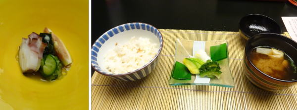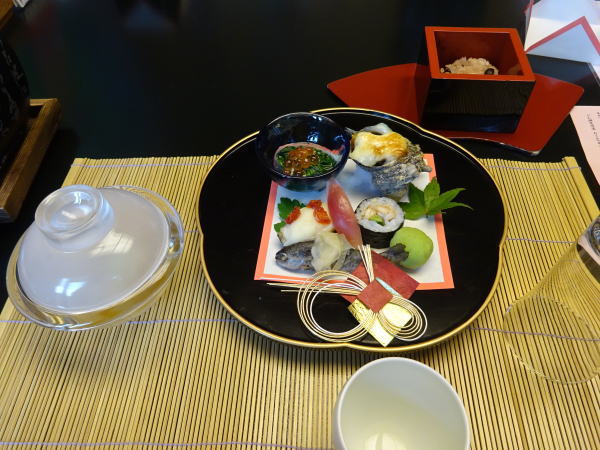 料理は一品一品運ばれる。 お酒はお好きなお猪口でどうぞと気が利いている。 |