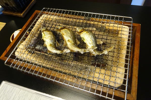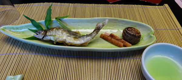 お風呂から出て、夕食は18時から個室の食事処でいただく。 |